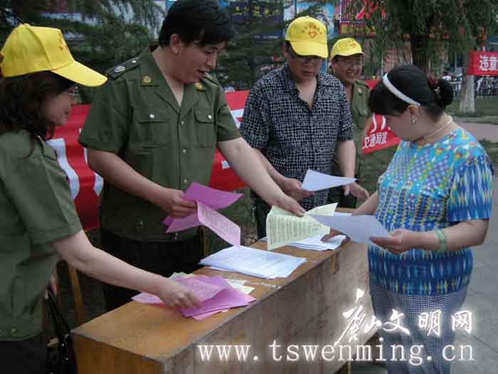 为提高广大市民交通安全意识,改正不文明交通习惯,6月4日下午,古冶区文明办、交警四大队、交通局、综合执法局、住建局、教育局、团委、广播电视局、公安分局和林西街道等10家单位联合,以“遵守交通法规、关爱生命旅程”为主题,在林西文化广场组织开展了交通安全宣传活动。