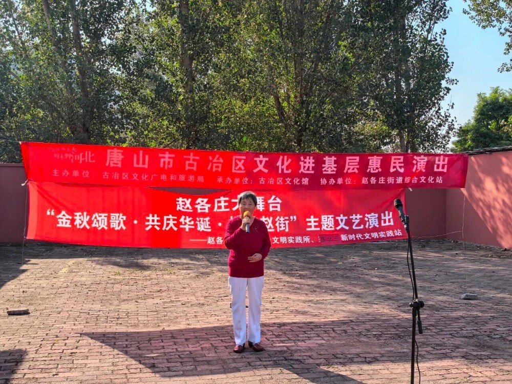 赵各庄街道依托 “赵各庄大舞台” 品牌,开展 “金秋颂歌・共庆华诞・情满赵街” 系列演出。9 月 26 日新工房社区广场演出前,社区书记宣讲唐山 “五种精神”,随后 9 个节目登场,观众自发合唱送祝福;28 日东北三社区接力演出,同主题宣讲后,14 个节目奉上文化盛宴,以 “理论宣讲 + 文艺演出” 模式强化思想引领。