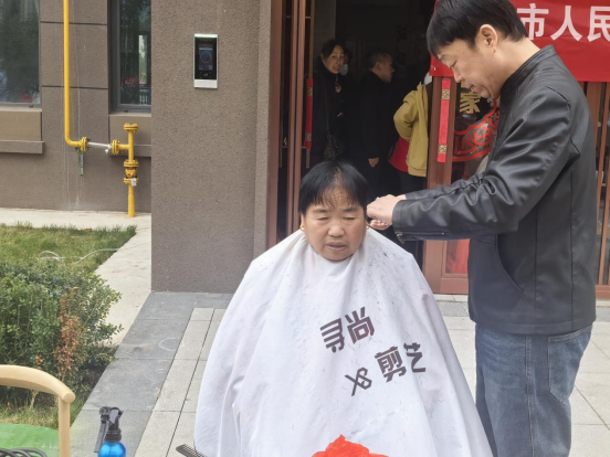 美奂物业的志愿者化身“贴心帮手”,现场提供义务理发服务,让老人以清爽利落的模样迎接节日。